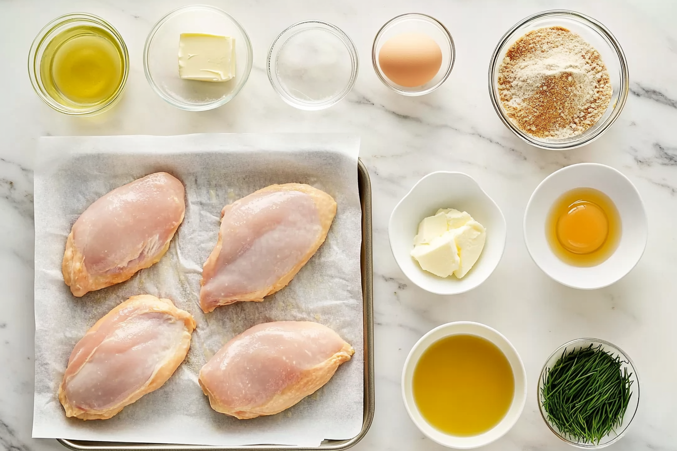 Slice the chicken breasts horizontally into thin cutlets (about 4 total). Pat dry and season with ½ tsp salt and ¼ tsp black pepper.