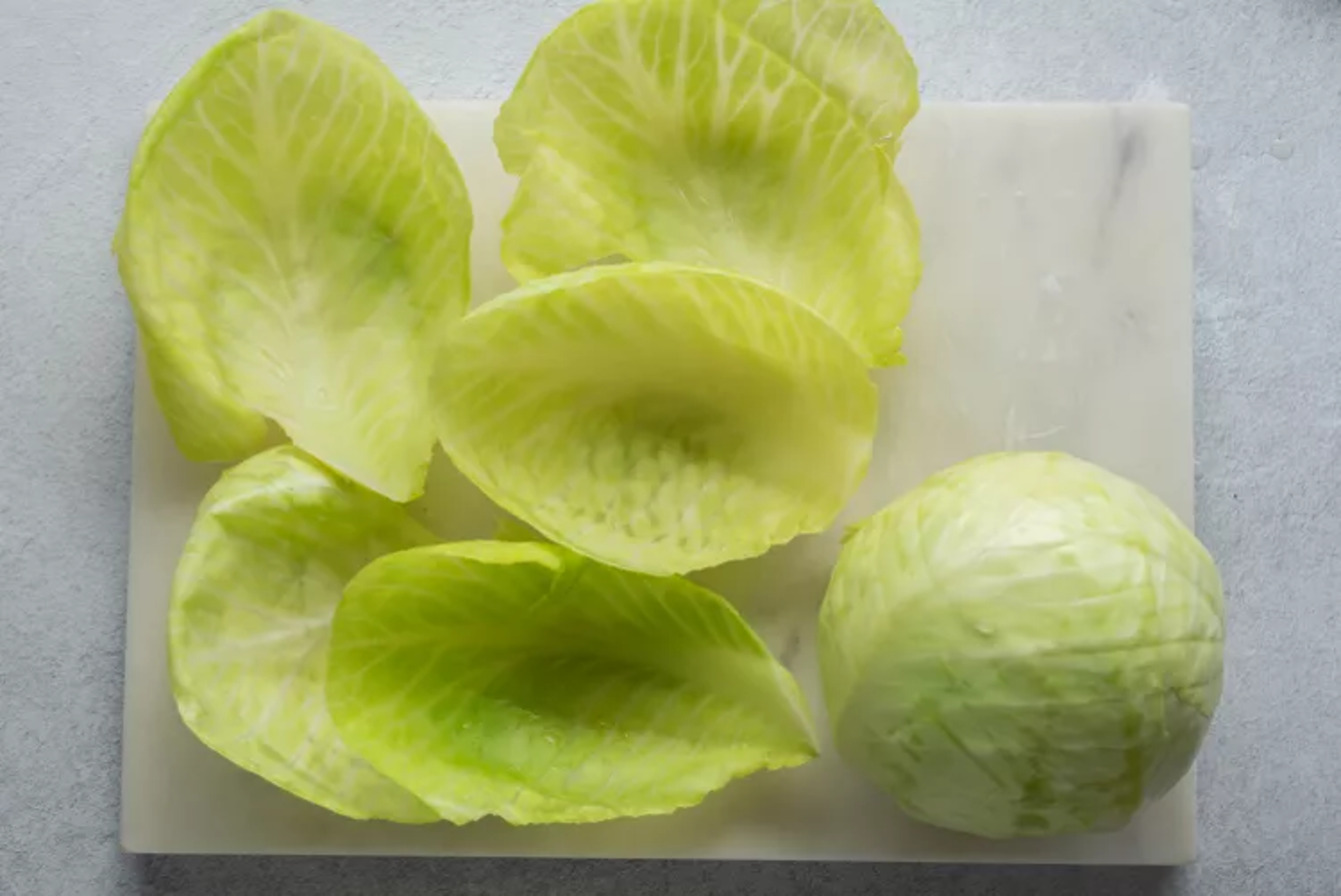 To begin, carefully remove the outer leaves of the cabbage and cut a small “X” into the stem at the bottom of the head. Bring a large pot of salted water to a boil and add the cabbage. Blanch the cabbage for about 5 minutes or until the leaves begin to soften. Once they’re soft enough to separate, remove the cabbage from the pot and set it aside to cool.